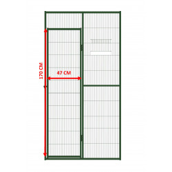 Volière de 4m² avec porte permettant de faciliter l’accès à l’intérieur de la volière.