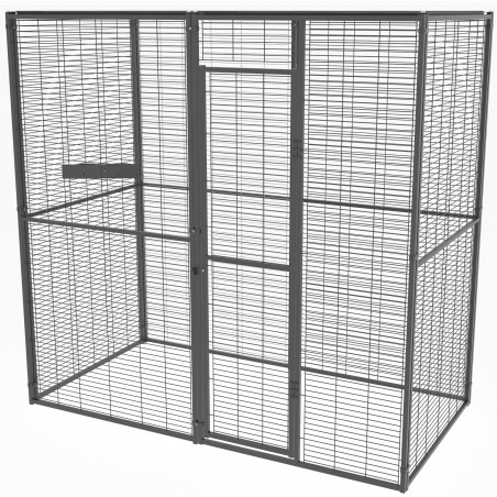 Volière van 2m 2 met deur voor gemakkelijke toegang.