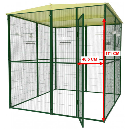 Volière van 4m2 met deur voor gemakkelijke toegang tot de binnenruimte.