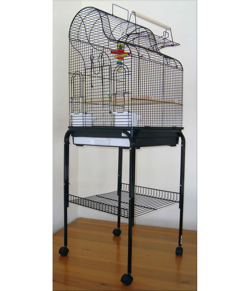 The cage is made of steel for better durability. The foot's four swivel wheels make it easy to move around. Equipped with an inner grate to keep your birds away from their feces
